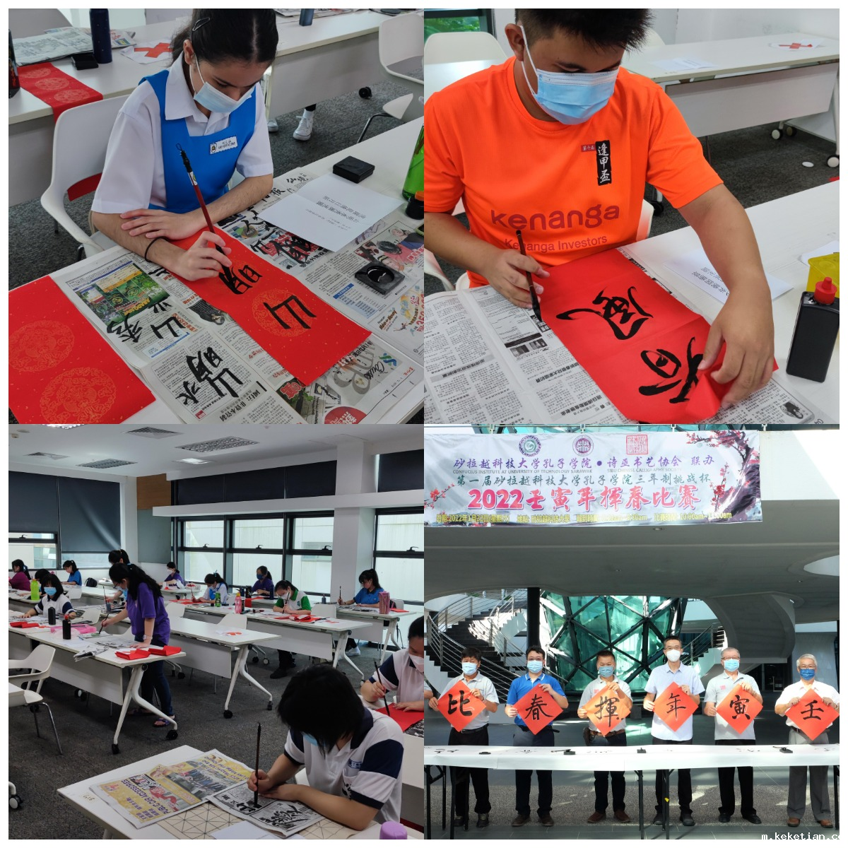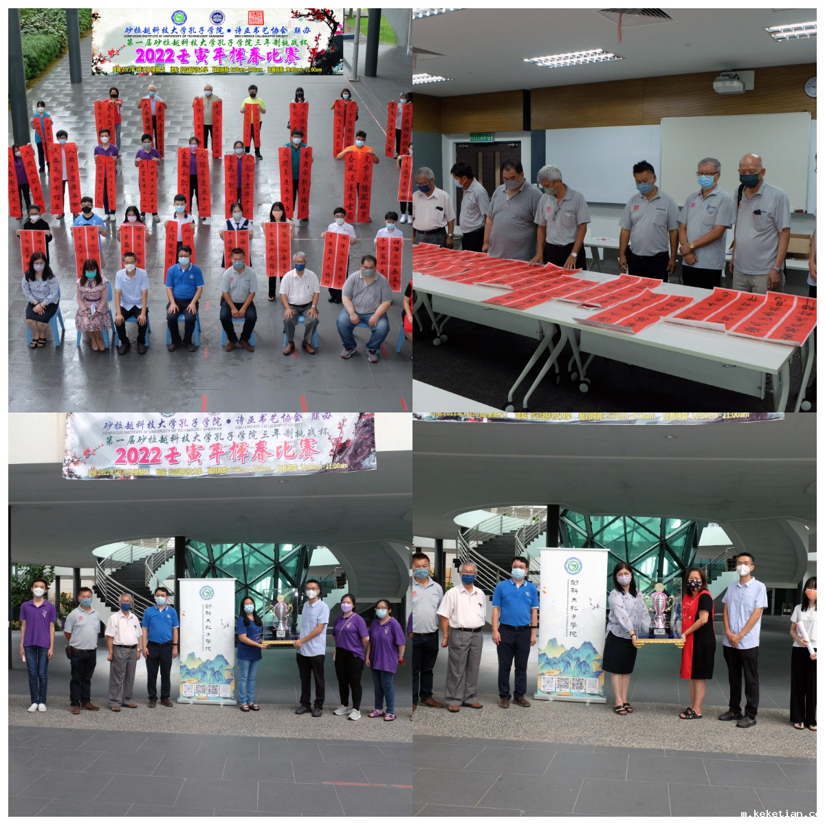 1月22日,由我校砂科大孔子学院主办、诗巫书艺协会协办的2022壬寅年“挥春”比赛在砂拉越科技大学成功举办。在遵守政府疫情防控标准作业程序的条件下,来自马来西亚诗巫市当地学校和各行各业的178名书法爱好者参与比赛,挥笔迎春,用中华传统的书法书写春联,表达人们对新一年的美好祝愿。