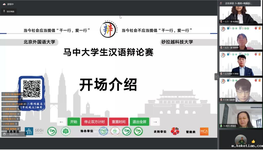 2月26日上午,有来自马来西亚和中国10所高校参与的第一届马中大学生汉语辩论赛首轮首场比赛云端开赛。