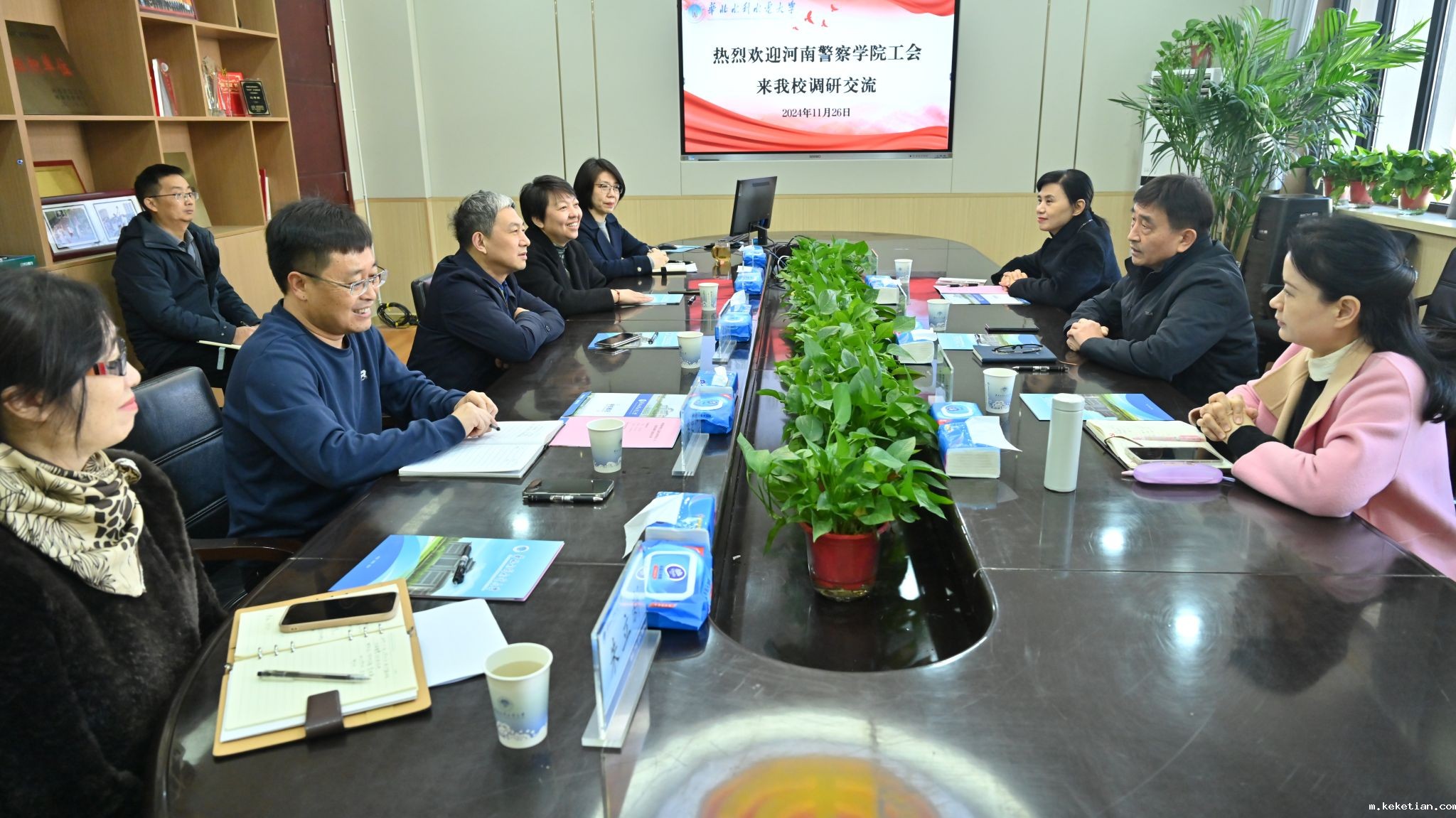 11月26日上午,河南警察学院工会副主席李洪亮一行来我校调研交流,会前,校党委副书记、工会主席刘盘根会见了李洪亮一行。座谈会由校工会副主席李明霞主持。工会全体成员参加了会议。