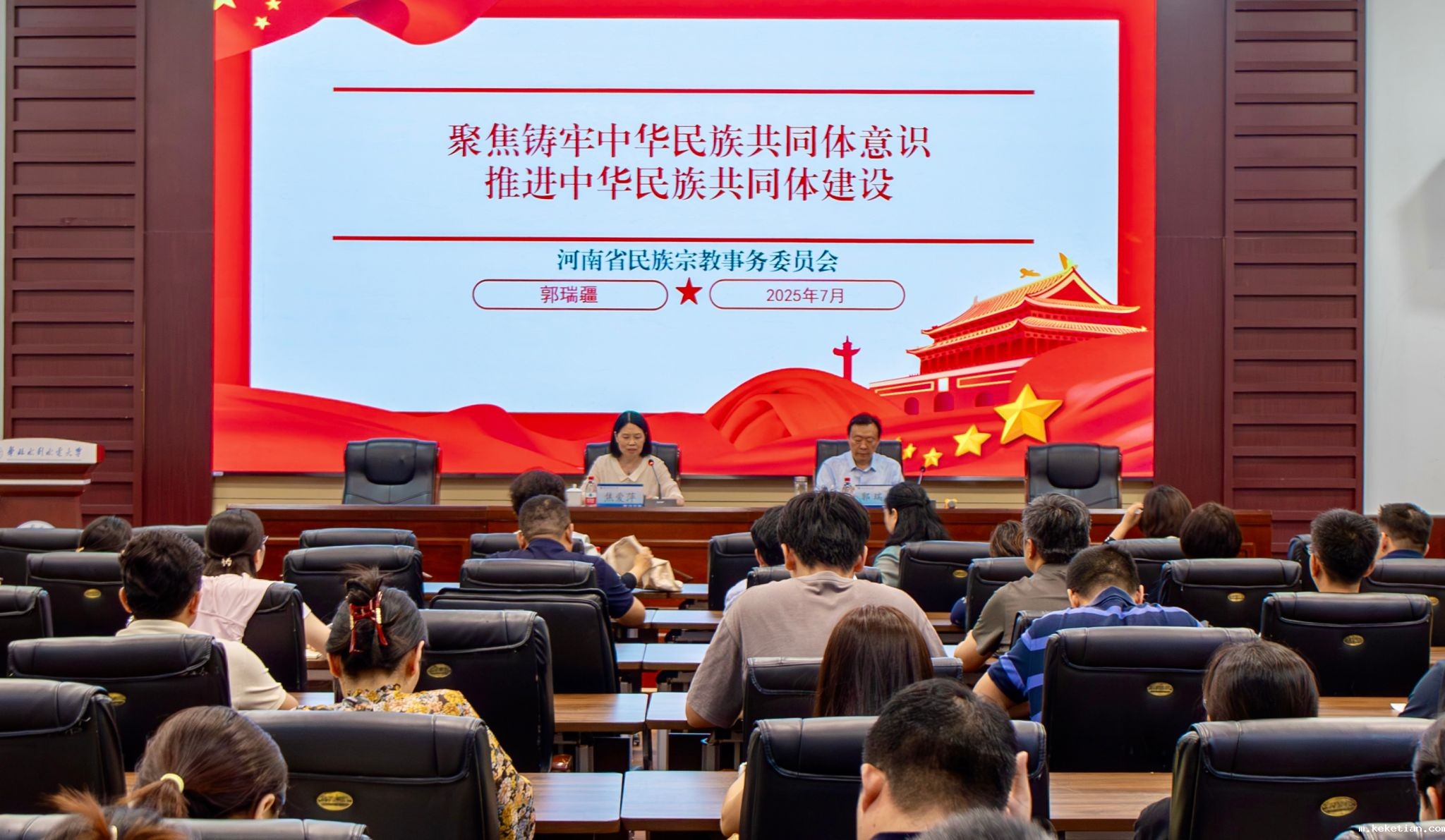 为深入学习贯彻习近平总书记关于加强和改进民族工作的重要思想、关于宗教工作的重要论述,全面贯彻党的民族宗教工作方针政策,进一步提升学校统战干部和学生工作队伍做好民族宗教工作的能力水平,7月8日,我校举办民族宗教政策法规专题培训,由河南省民族宗教事务委员会郭瑞疆副主任作题为“聚焦铸牢中华民族共同体意识推进中华民族共同体建设”的辅导报告。报告会由党委副书记焦爱萍主持。