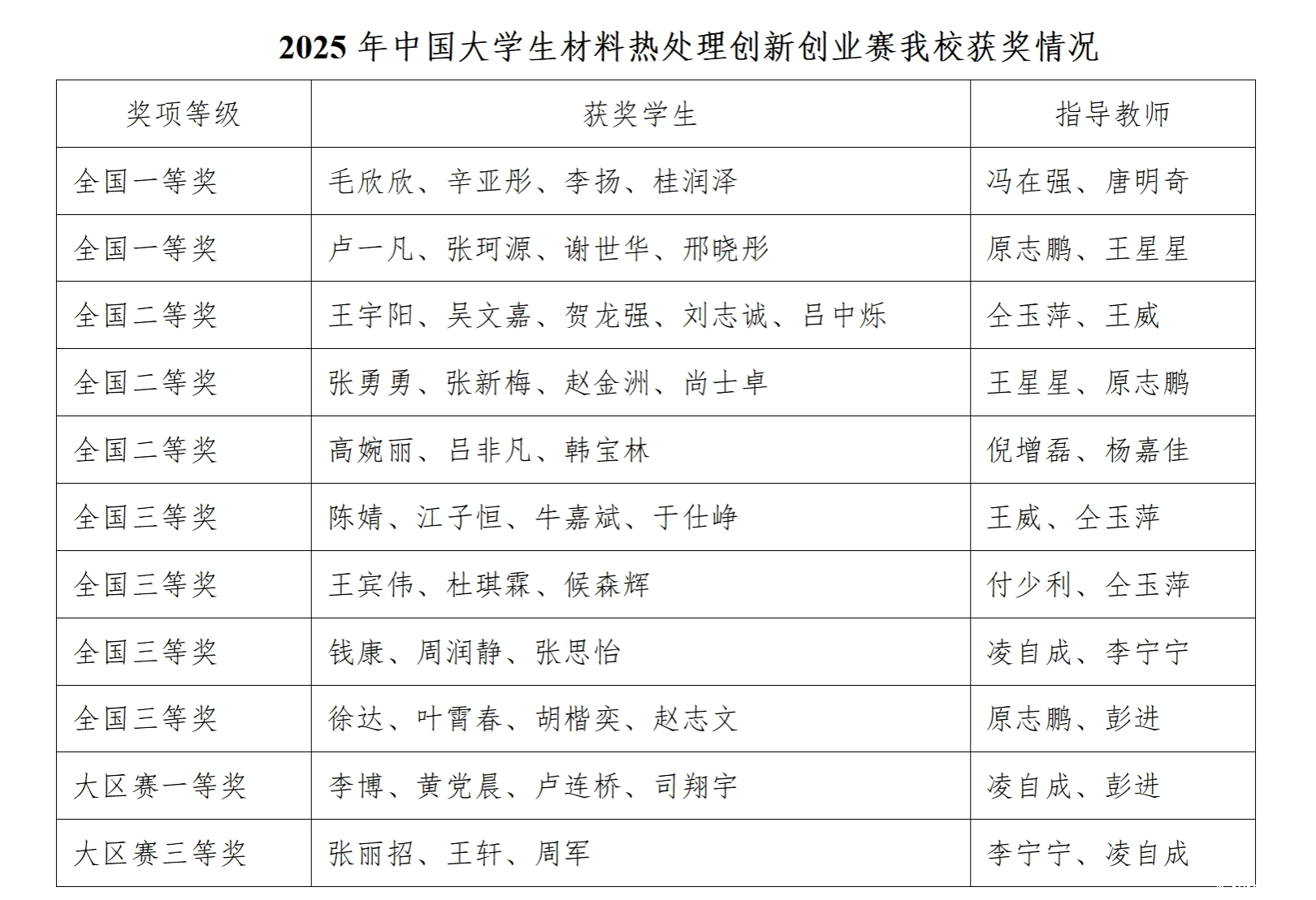 中国大学生材料热处理创新创业赛自2015年创办以来,已成功举办十一届,并连续入选《全国普通高校大学生竞赛分析报告》榜单,是材料热处理领域最具影响力的品牌赛事。材料学院高度重视此次大赛,精心组织,工程实践与创新中心、研究生院等相关部门也给予了鼎力支持。此次成绩必将进一步激发学生对热处理技术的实践热情,为学校“双一流”创建注入新动能,也为我国新材料创新发展贡献伟德投注站官网电话智慧和力量。