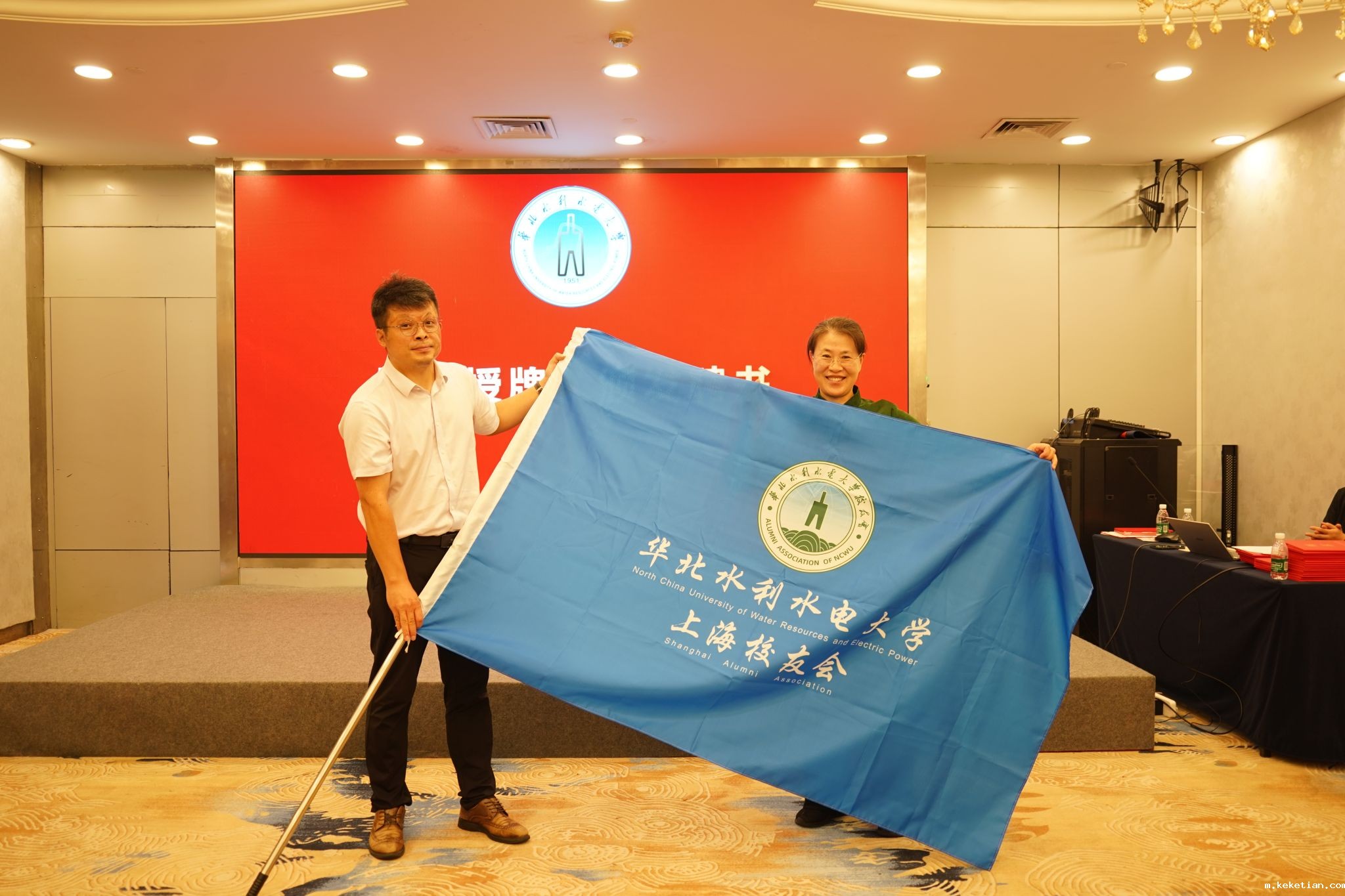 副校长刘雪梅、校友总会办公室负责人等分别向上海校友会授旗、授牌,颁发聘书。