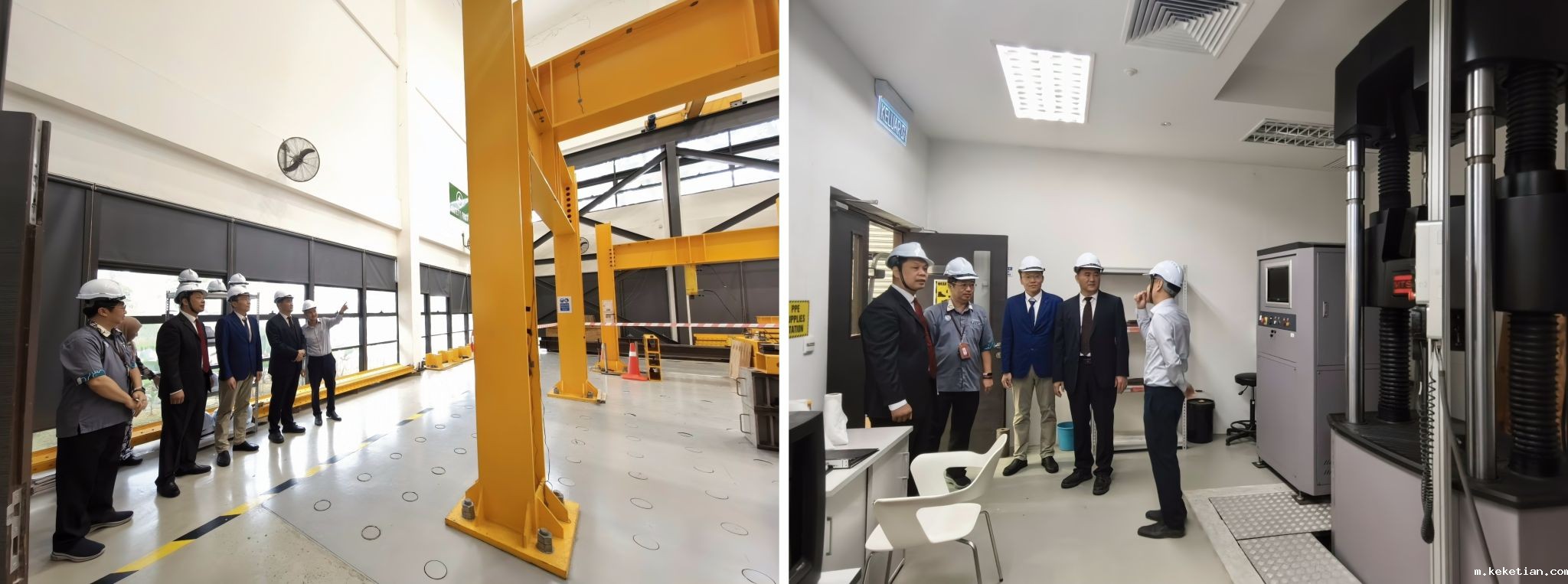 在马来西亚砂拉越科技大学,李彦彬一行与该校校长拿督凯鲁丁等座谈交流,就合作举办孔子学院揭牌5周年系列活动、续签华禹学院办学协议、扩大师生双向交流规模等达成一致意见。会后,李彦彬一行参观了该校土木工程实验室、食品工程实验室等。